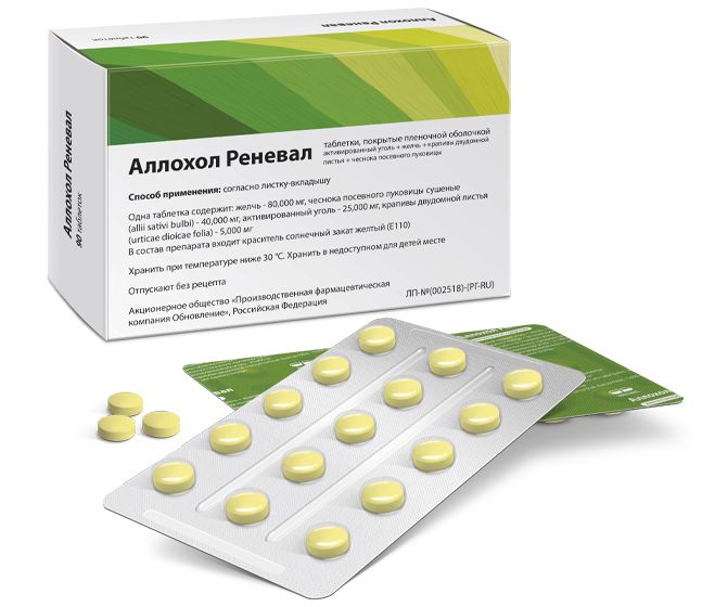 Препарат Аллохол Реневал увеличивает образование желчи и ускоряет ее выделение через желчевыводящие пути, тем самым уменьшая застой желчи в желчном пузыре; предупреждает образование желчных камней. Снижает процессы гниения и брожения в кишечнике, улучшая пищеварение, работу печени и желчного пузыря.