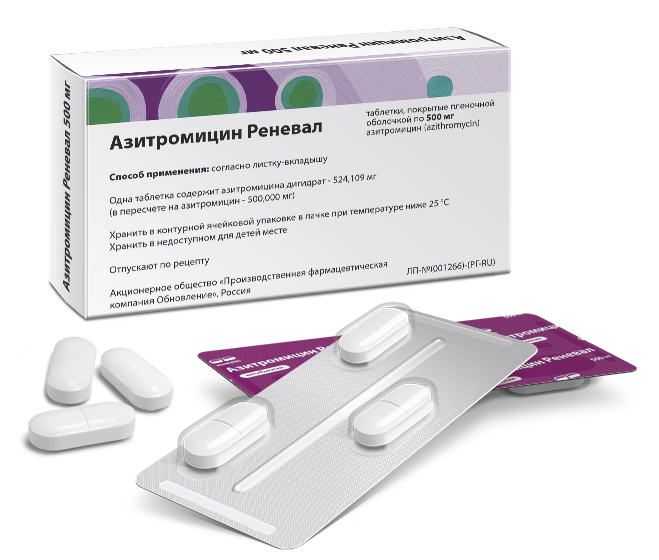 Инструкция по применению Азитромицин Реневал 500 мг №3