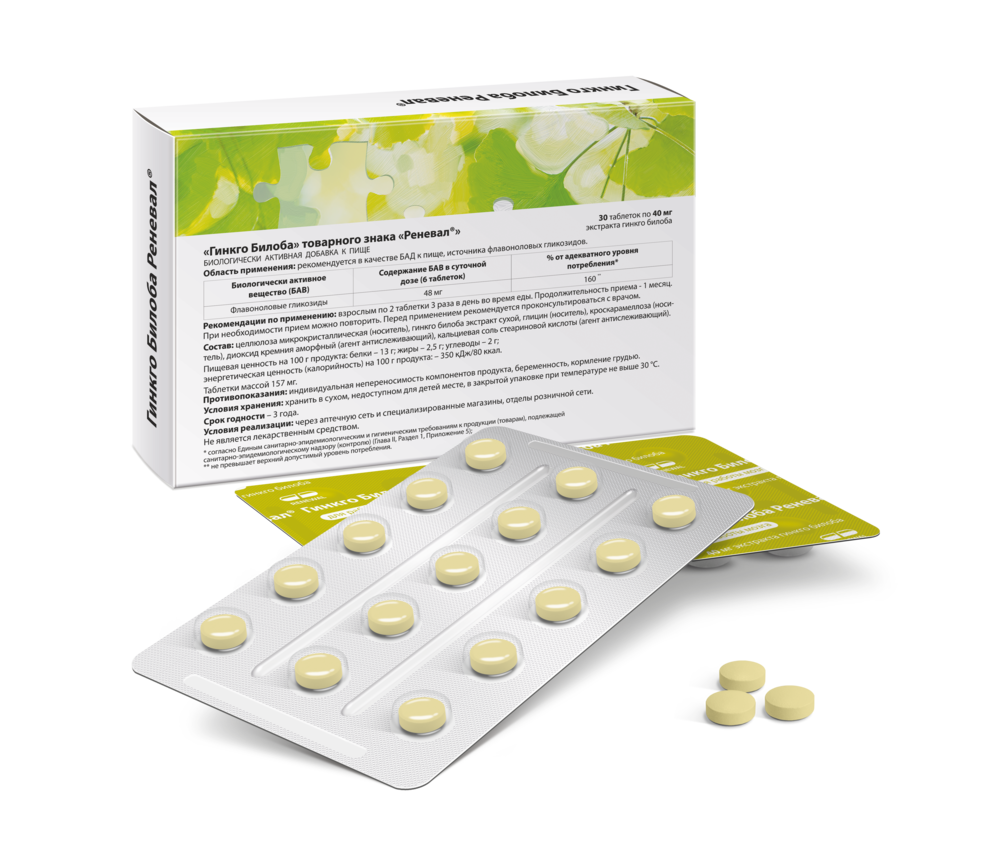 Инструкция по применению Гинкго Билоба Реневал 40 мг №30