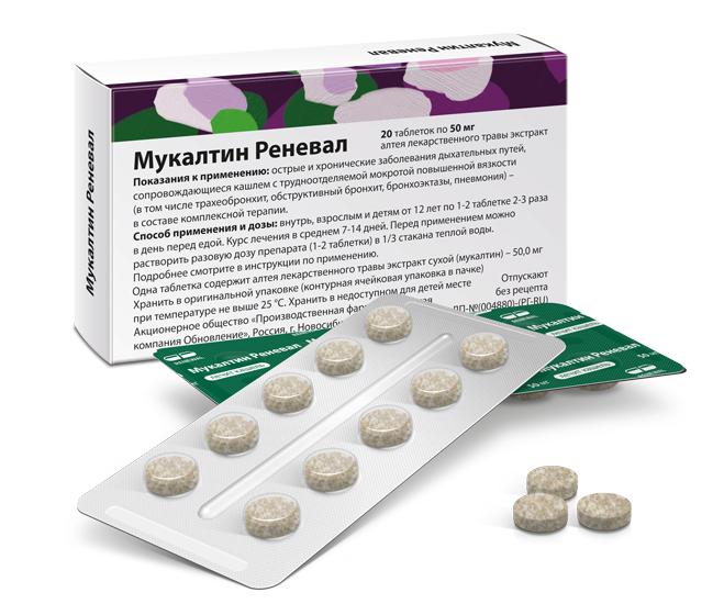 Инструкция по применению Мукалтин Реневал 50 мг №20