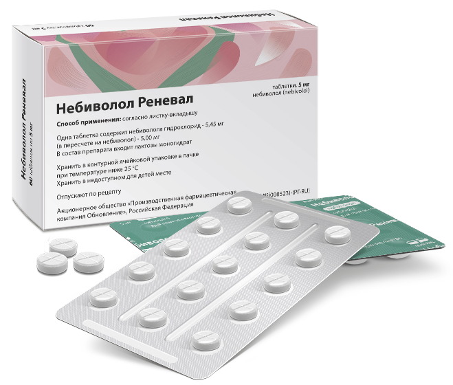 Инструкция по применению Небиволол Реневал 5 мг №60