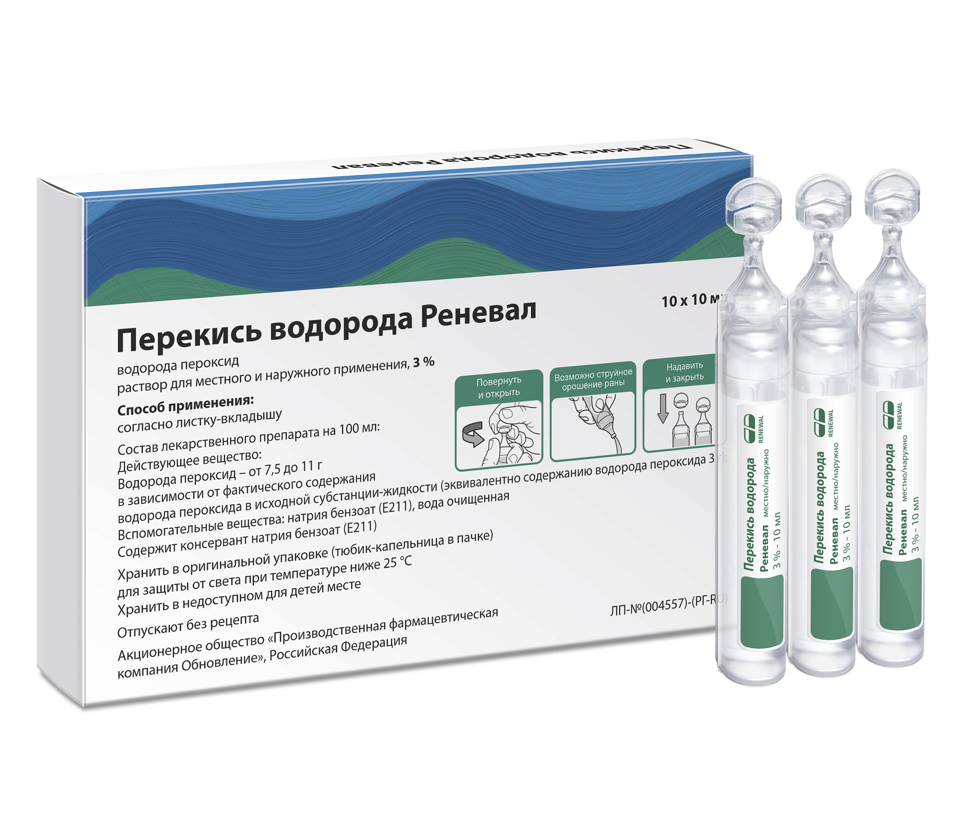 Инструкция по применению Перекись водорода Реневал 3% 10 мл № 10