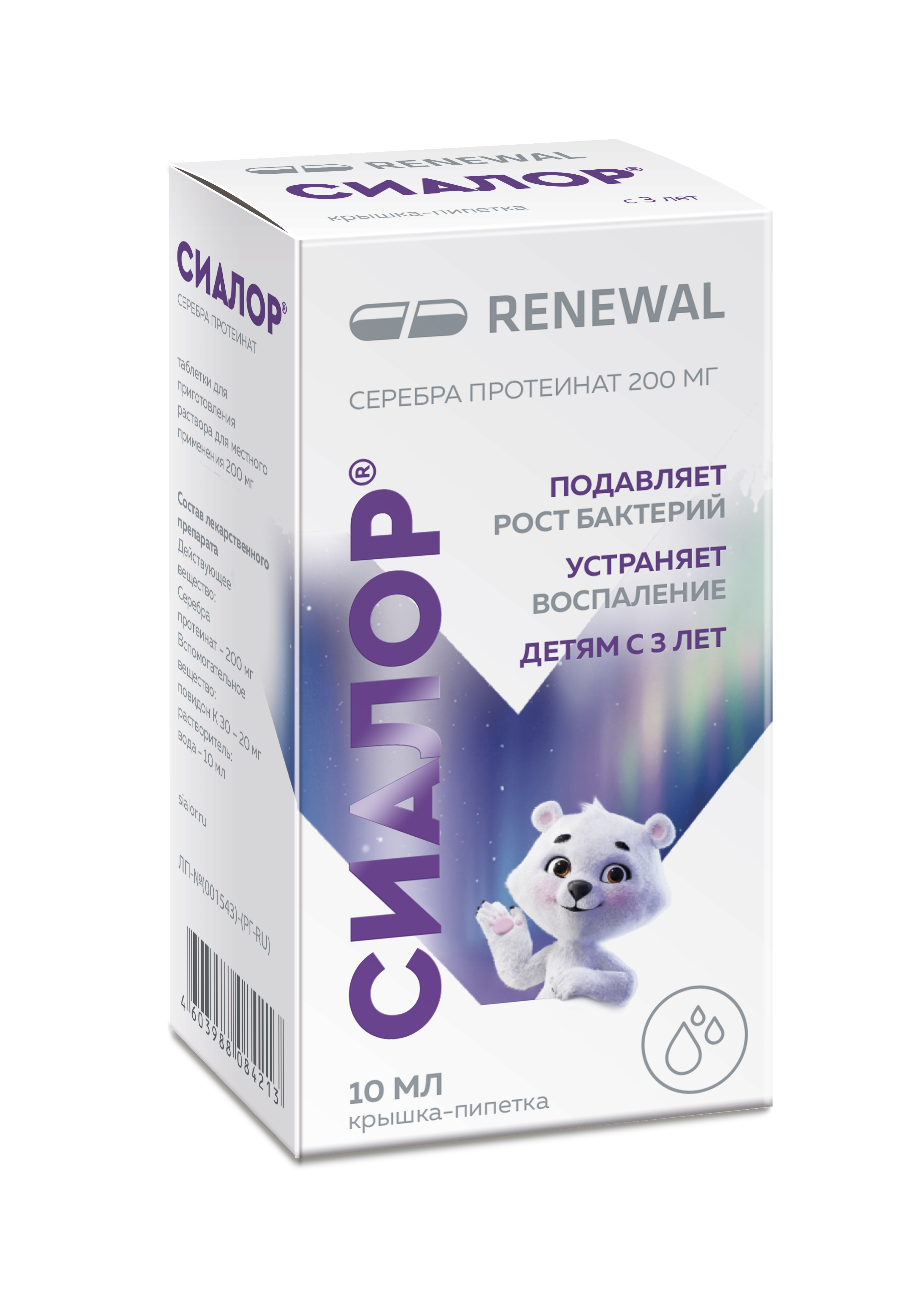 Сиалор капли — оригинальный* лекарственный препарат для лечения насморка (в том числе затяжного) у детей с 3 лет и взрослых. Он действует на причину насморка, тем самым лечит его, а не просто маскирует симптомы. Сиалор подавляет рост бактерий, уменьшает воспаление и отёк, что улучшает носовое дыхание. Сиалор не вызывает привыкания. Хранится при комнатной температуре. Состав без антибиотиков, без гормонов и без консервантов.
