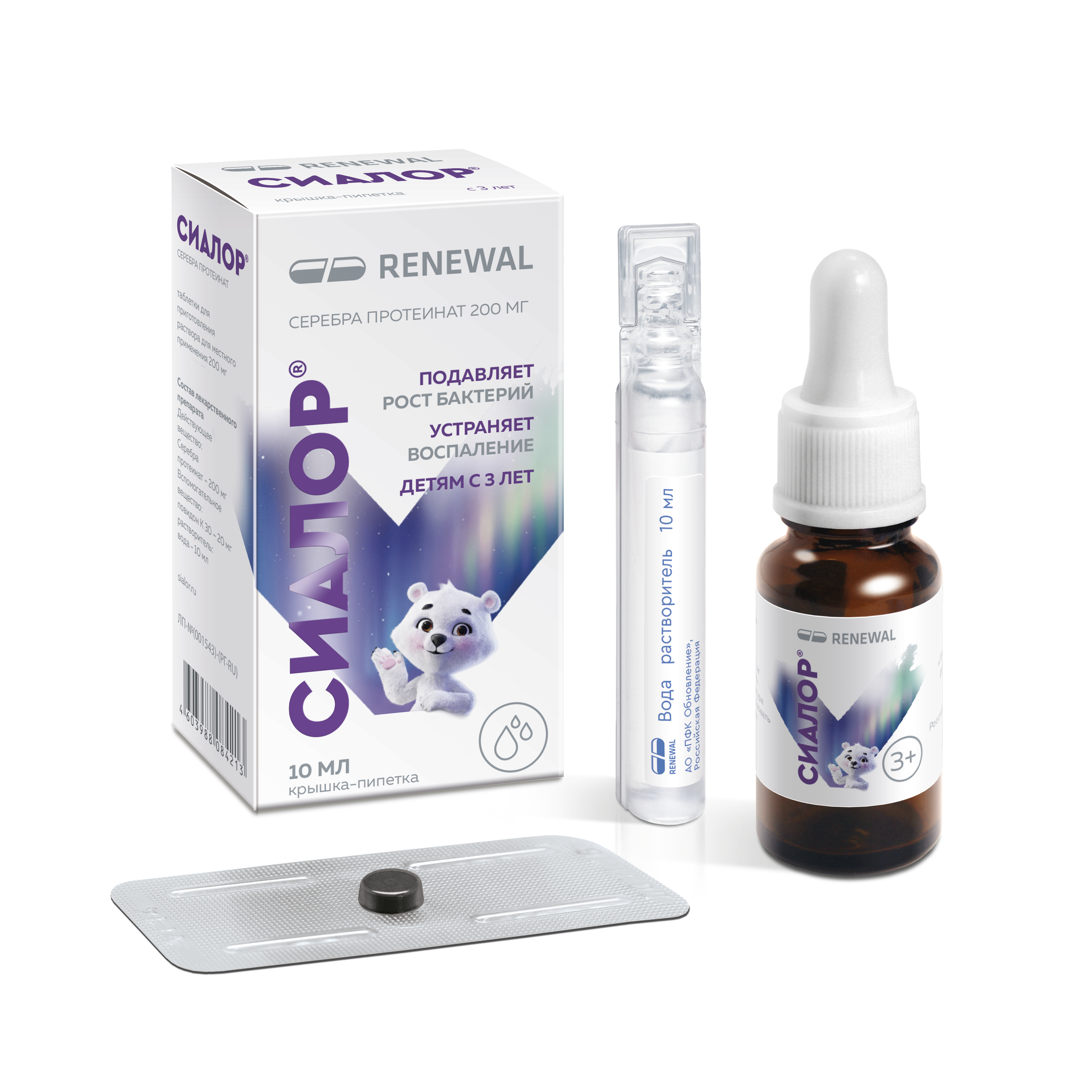 *Компания АО «ПФК Обновление» первой создала стабильную таблетированную форму серебра протеината.