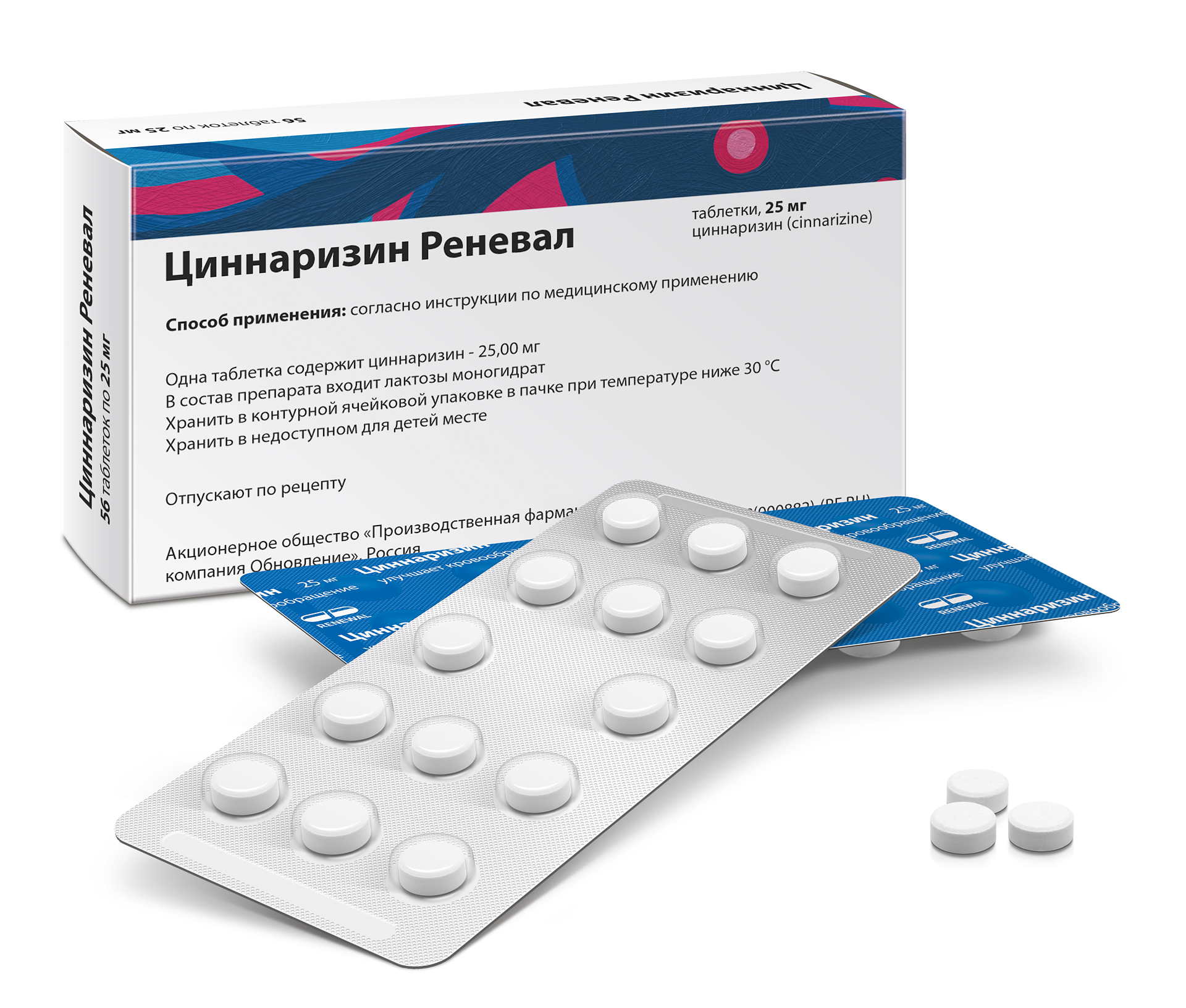 Инструкция по применению Циннаризин Реневал 25 мг №56